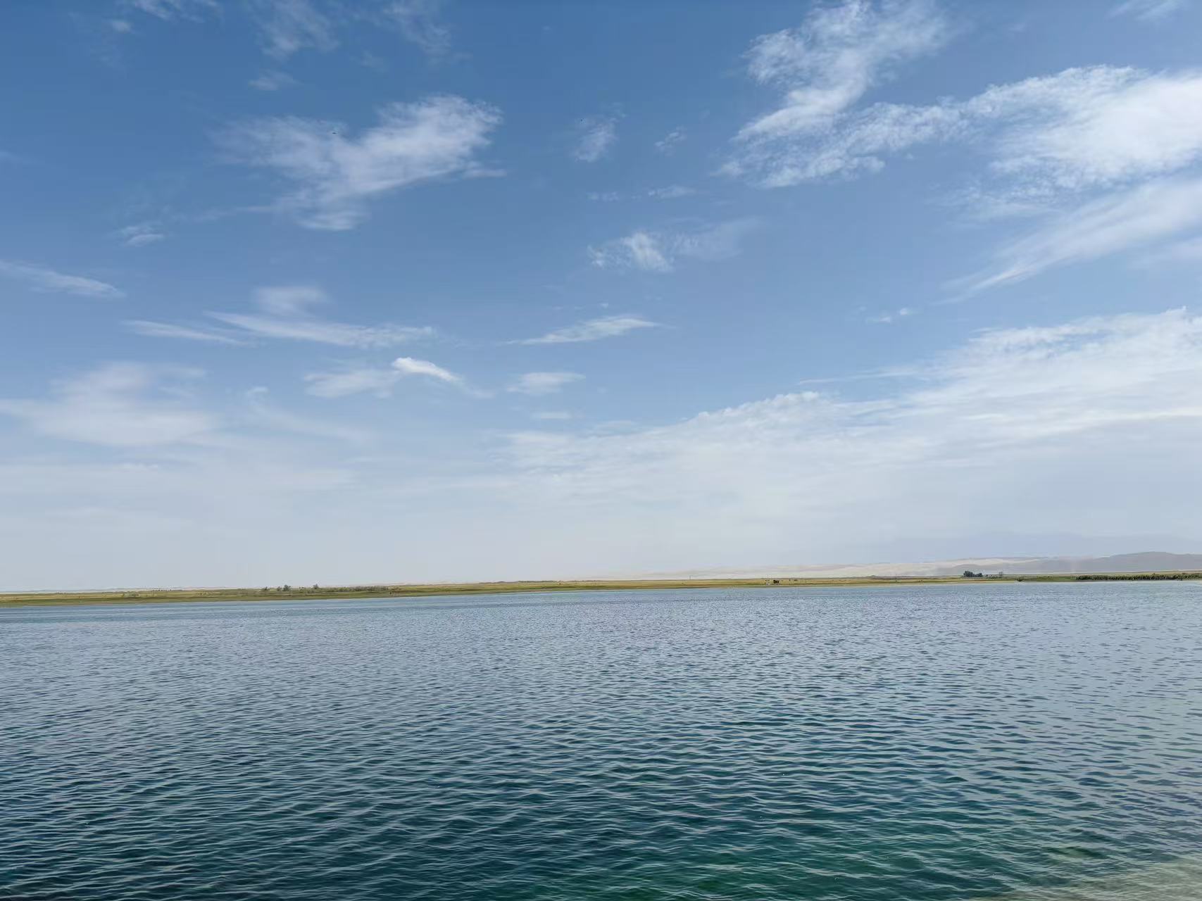 陽關(guān)鎮(zhèn)外,戈壁蒼茫,在沙海深處,竟嵌著一汪晶瑩之水——渥洼池,如同沙漠大睜的眼眸,凝視著無垠的瀚海。水色清冽,映著天光,周圍草木生機(jī)勃發(fā),與黃沙對峙,界限分明。遙想當(dāng)年,壽昌海亦曾水闊如鏡,渥洼池更是傳說中天馬的故鄉(xiāng)。如今雖不復(fù)舊日壯闊,但碧波依然,為天地間一片奇跡。水邊蘆葦輕搖,岸上紅柳婆娑,水鳥掠影,將荒涼的沙海點(diǎn)染成生命的綠洲。池水與沙丘之間,綠意與枯黃相接,彼此抗衡,又彼此依偎,恰似自然在絕境中締結(jié)的盟約。