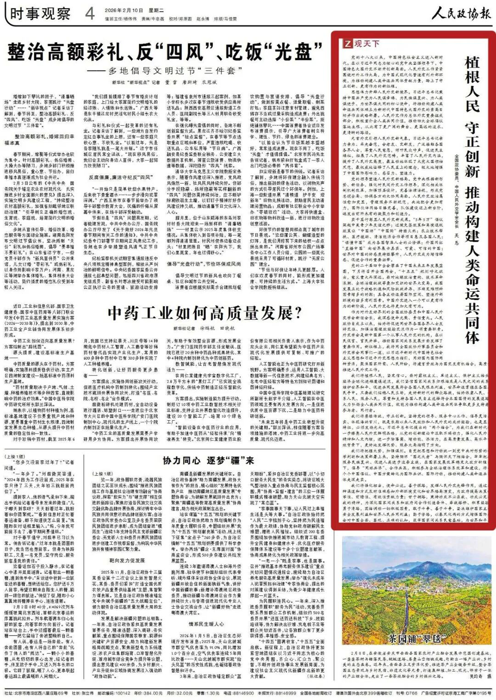 2月10日,《人民政協(xié)報》刊登全國政協(xié)委員、中國人民外交學(xué)會會長吳懇署名文章《 植根人民 守正創(chuàng)新 推動構(gòu)建人類命運共同體》,全文如下: