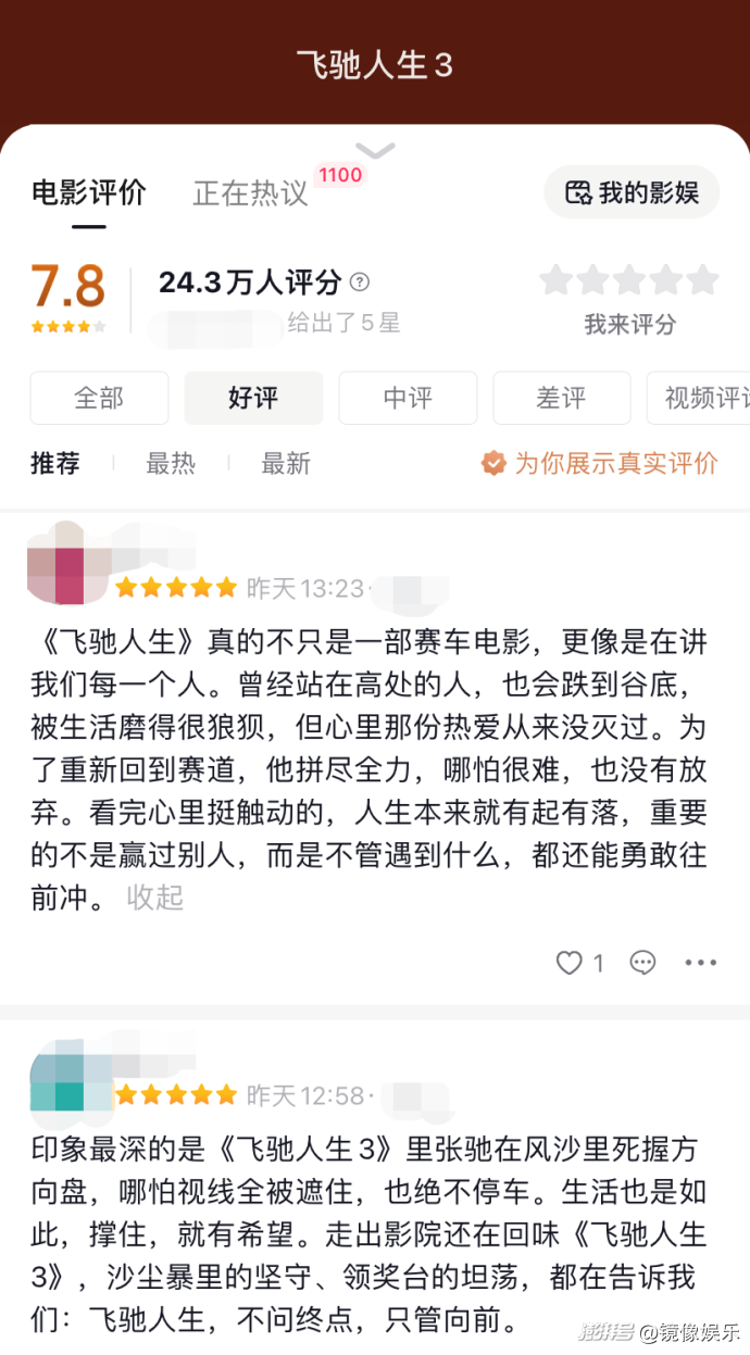 當(dāng)然,如果只有燃點(diǎn)和笑點(diǎn),《飛馳3》大概率不會如此迅速地跑出斷崖領(lǐng)先的優(yōu)勢,影片能夠引發(fā)共鳴的關(guān)鍵還在于人?!啊讹w馳3》真的不是一部賽車電影,更像是在講我們每一個人。”抖音用戶@周**0 的評論一語中的。