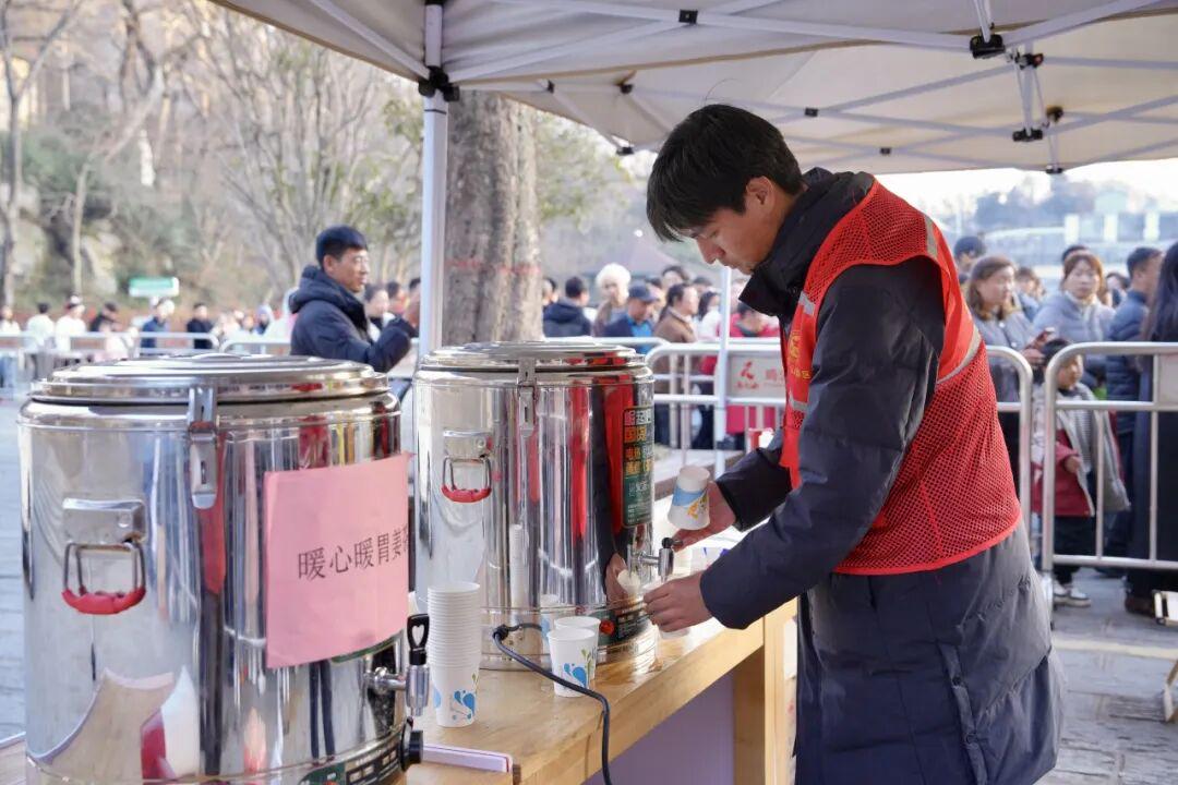 以“暖”字當(dāng)先,提升春節(jié)文旅服務(wù)溫度?!坝慰偷谝?,服務(wù)至上”不是口號(hào),是流淌在冬日里的暖流。景區(qū)推出全天候暖心美食福利,特別是售價(jià)僅1元的“暖心魚湯”,湯鮮料足,暖身更暖心,成為刷爆朋友圈的“溫情爆款”。景區(qū)志愿服務(wù)隊(duì)與巡游演藝人員在山下?lián)Q乘區(qū)、下山候車區(qū)、報(bào)曉峰廣場等游客密集區(qū)域,通過文藝表演、趣味互動(dòng)舒緩游客等候情緒,主動(dòng)派送零食、送上姜湯。面對(duì)物品遺失、突發(fā)情況,一線人員快速響應(yīng)、暖心相助。山中有景,服務(wù)有情,雞公山把溫暖寫進(jìn)春節(jié)的每一刻。