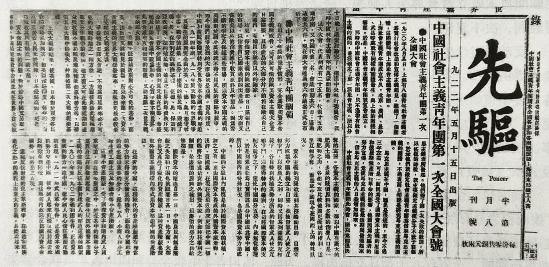 1922年5月15日,《先驅》上刊登的關于中國社會主義青年團第一次全國代表大會的報道。