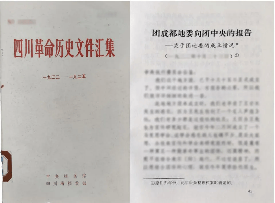 團成都地委成立后給團中央的報告(摘自《四川革命歷史文件匯集》)