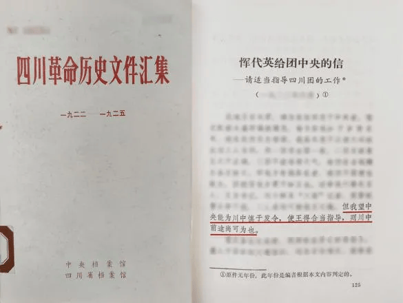 惲代英給團中央的信(摘自《四川革命歷史文件匯集》)