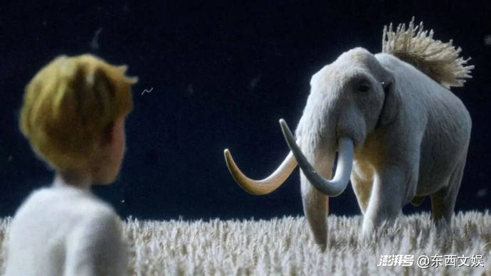 那一場(chǎng)戲要解決的是:人物與動(dòng)物之間的內(nèi)在關(guān)系,而非外部的空間關(guān)系,因此這個(gè)轉(zhuǎn)場(chǎng)不是通過運(yùn)鏡完成的,而是通過剪輯:插入一個(gè)男孩的腳與雪地上的大象腳印重疊的鏡頭,它意味著物種間的協(xié)作與平等,也是精神上的合一。