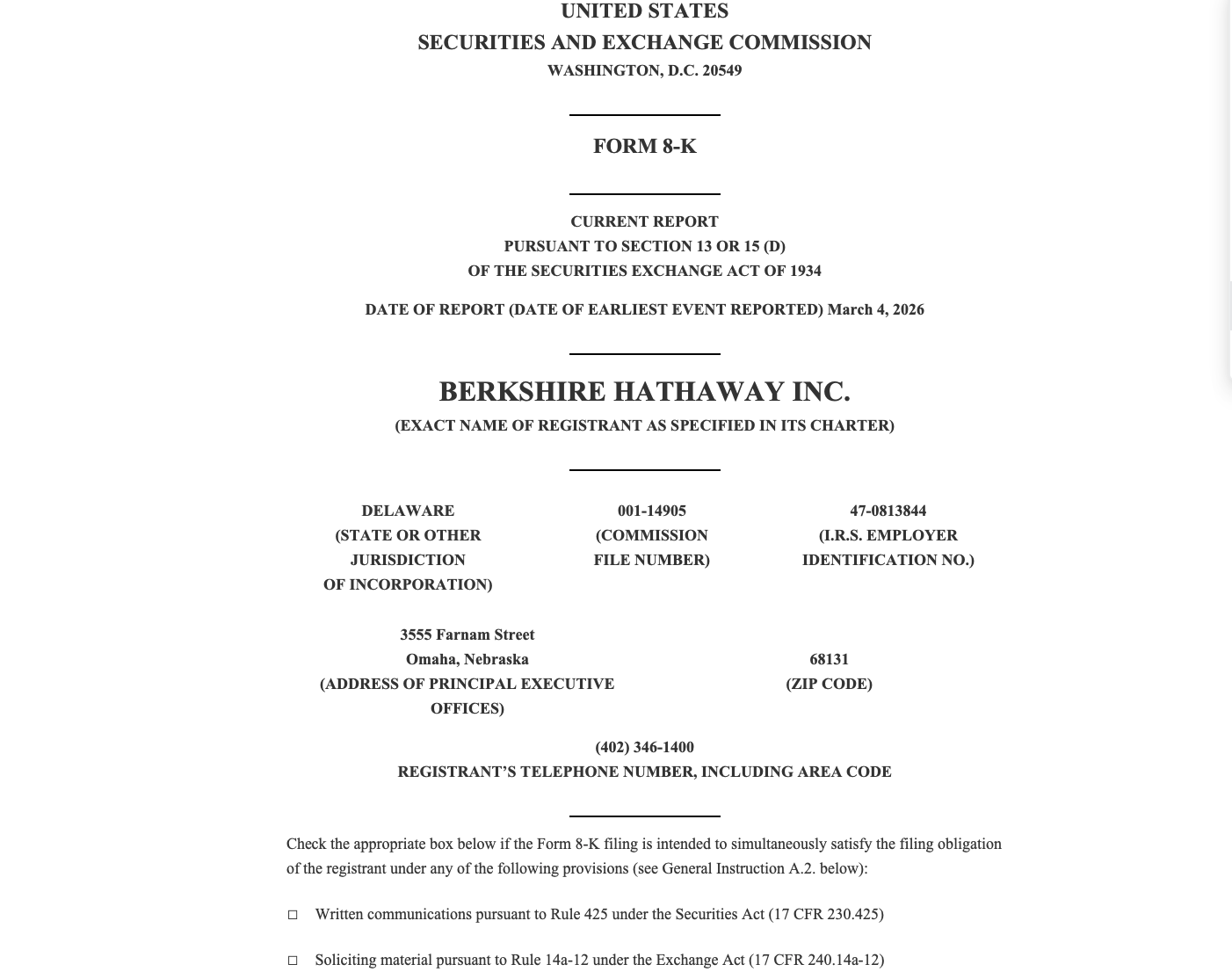 當(dāng)?shù)貢r(shí)間3月4日,伯克希爾·哈撒韋公告稱,于3月4日正式重啟普通股回購(gòu)計(jì)劃,這是自2024年以來(lái)該公司首次恢復(fù)回購(gòu)自身股票。