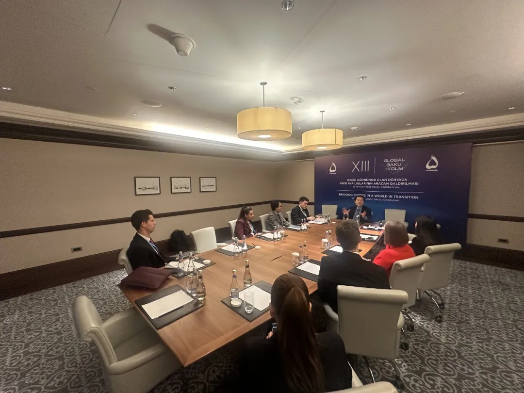 14日,全球巴庫論壇舉辦論壇嘉賓與論壇青年領(lǐng)袖見面座談會,邀請CCG創(chuàng)始人兼理事長王輝耀、CCG聯(lián)合創(chuàng)始人兼秘書長苗綠介紹中國全球治理倡議,與論壇青年領(lǐng)袖展開對話交流與探討。與會青年嘉賓圍繞全球化進(jìn)程、中東危機、中亞安全與中歐發(fā)展、全球南方和未來全球治理新模式等話題,與王輝耀博士和苗綠博士展開廣泛而充分的交流對話。