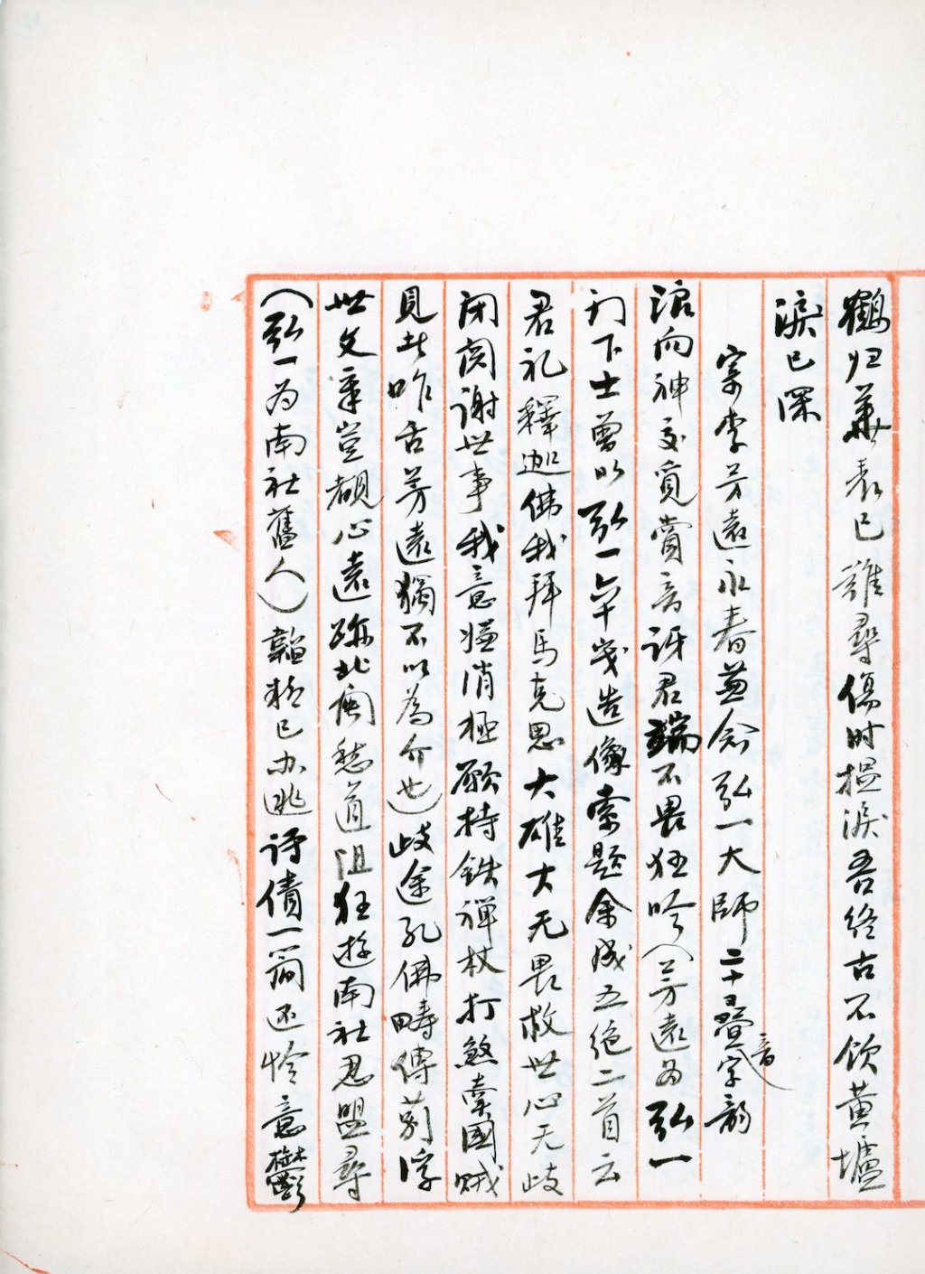 《圖南集》丁集《寄李芳遠永春兼念弘一大師》稿