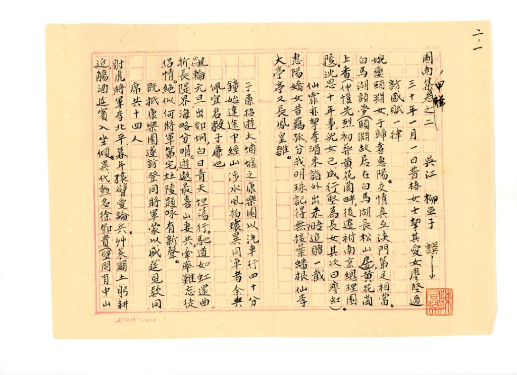 此外,《甲四》一九四一年一月三十一日有詩《陳誦芬為余任〈南明史稿〉鈔胥,感謝靡涯,奉贈紅豆一雙并媵此律》,不知是否有抄詩。