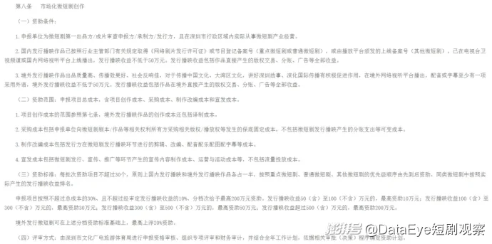境外發(fā)行微短劇最高上浮20%資助、單項(xiàng)目最高300萬(wàn)元資助金額、單企業(yè)單批次最高500萬(wàn)元資助金額,也穩(wěn)居國(guó)內(nèi)短劇出海專項(xiàng)補(bǔ)貼的第一梯隊(duì)。