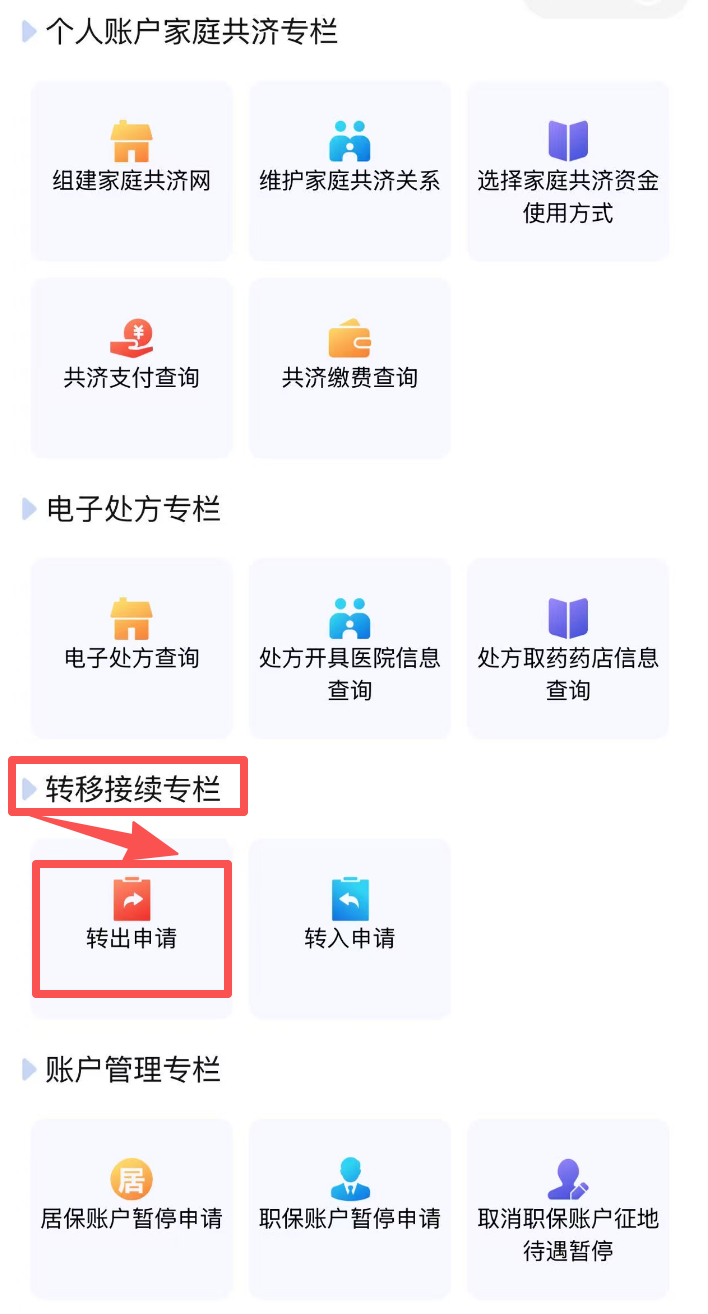 本市城鎮(zhèn)職工基本醫(yī)療保險參保人員若流動到外省市就業(yè),且已轉出養(yǎng)老保險關系后,可通過登錄“國家醫(yī)保服務平臺”地方專區(qū)(底部菜單欄)-上海市-轉移接續(xù)專欄-轉出申請,進入轉出申請頁面。