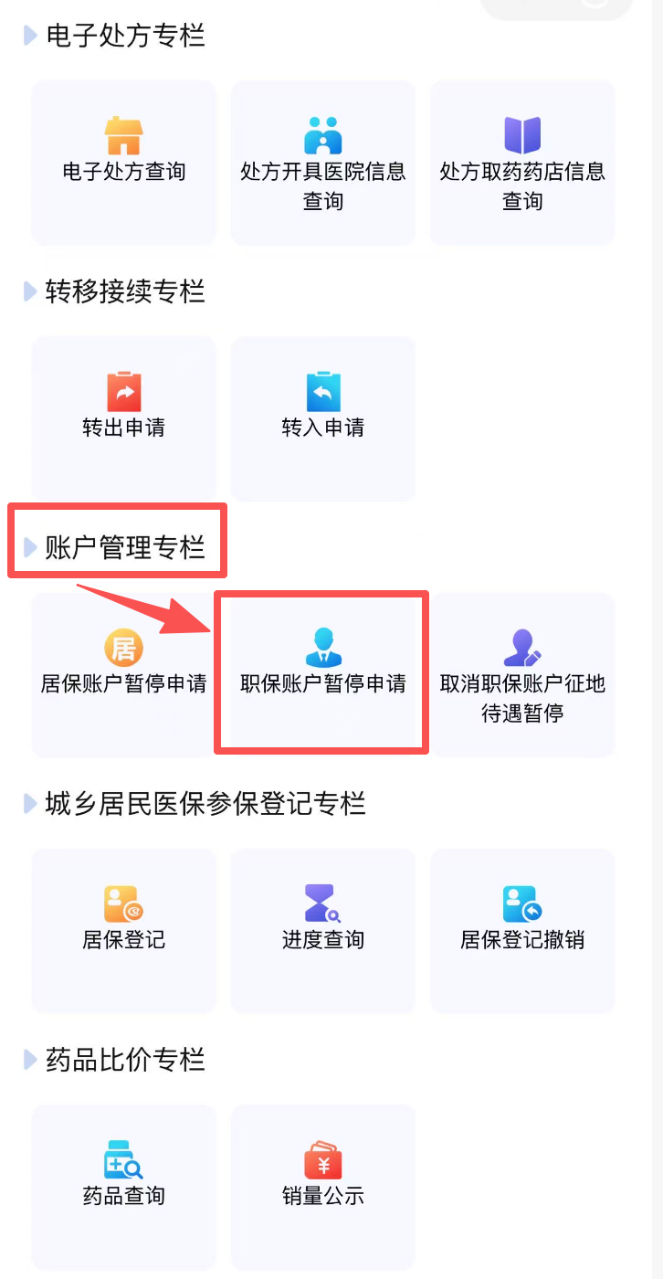 可通過登錄“國家醫(yī)保服務平臺”地方專區(qū)(底部菜單欄)-上海市-賬戶管理專欄,點擊“職保賬戶暫停申請”,核對“基本信息”后,點擊確認。