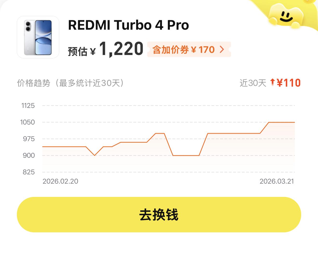 小米REDMI Turbo 4 Pro,只是目前的一款千元機(jī),甚至都不是在售的最新系列,但其回收價(99新)自去年12月的1000元,漲到目前的超過1200元,最近3個月漲幅超過20%。