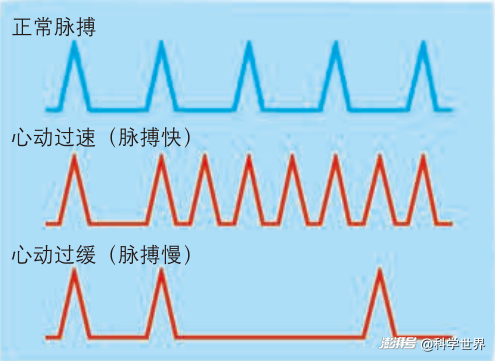 但是,當傳導系統在某些原因下無法正常作用時,如上圖所示,心跳就會過速或過緩,有時還會暫停或不規(guī)則跳動,這就是我們常說的心律不齊。