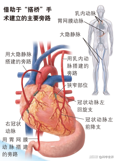 還有一種方法是實施冠狀動脈搭橋手術,即在堵塞的冠狀動脈上“搭橋”造成旁路,使供血恢復正常。