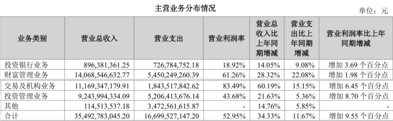 增幅方面,去年廣發(fā)證券的交易及機構(gòu)業(yè)務(wù)營收,同比增幅超過六成,增加60.19%,營業(yè)收入達111.69億元。