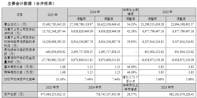 3月30日晚間,廣發(fā)證券發(fā)布的《2025年年度報告》顯示,報告期內(nèi),公司營業(yè)總收入為354.93億元,同比增長了34.33%;歸屬于上市公司股東的凈利潤(下稱“凈利潤”)為137.02億元,同比增長42.18%??鄯莾衾麧櫈?42.57億元,同比增長了59.93%。