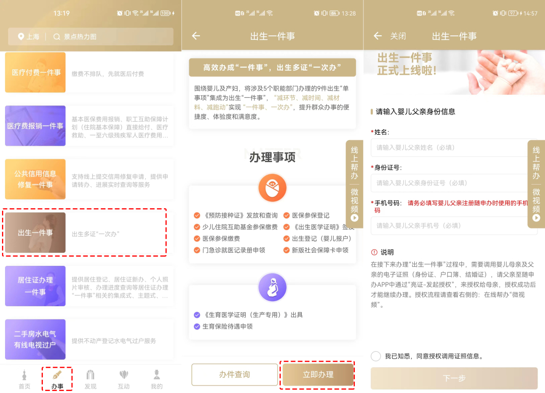 “隨申辦市民云”出生“一件事”