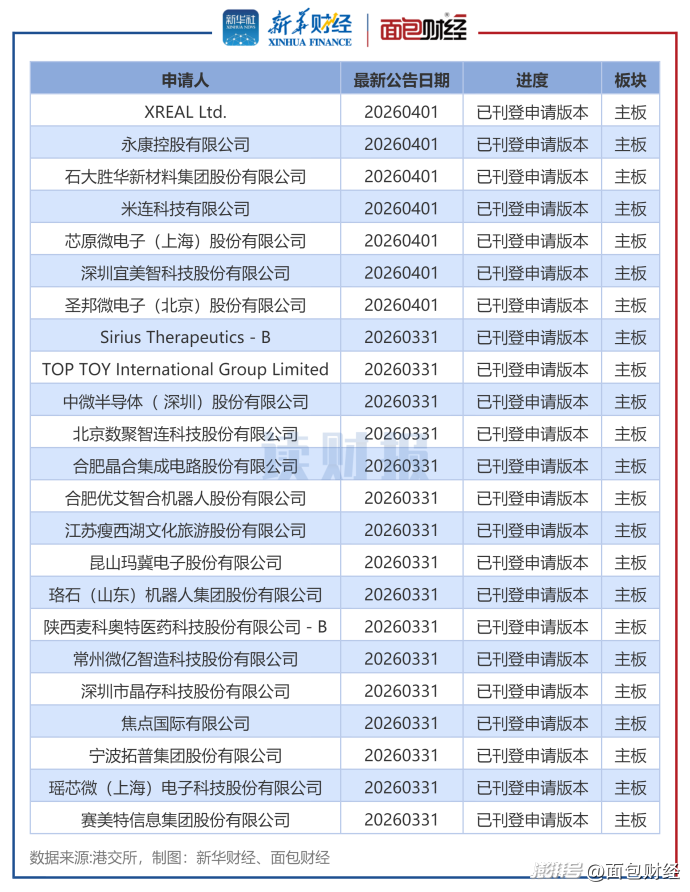 新華財經(jīng)和面包財經(jīng)研究員根據(jù)香港交易所披露信息,對港股IPO排隊及新上市企業(yè)進行了梳理統(tǒng)計。其中,港股IPO排隊企業(yè)選取依據(jù)為審核狀態(tài)為已刊登申請版本、已刊登聆訊后資料集。