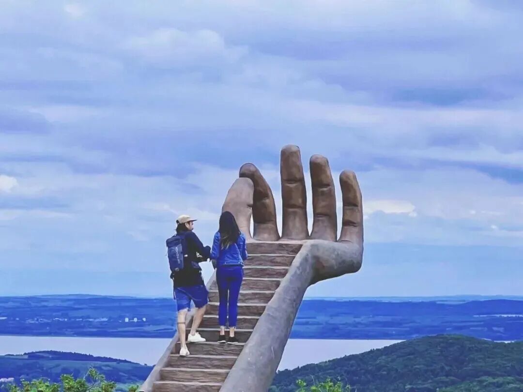 云端天梯。34階純白階梯,直插天際,隨手一拍,就是刷爆朋友圈的“天梯大片”;通天佛手。金色巨掌托起山間仙境,立于“佛手”之巔,遠(yuǎn)眺湖光山色,氛圍感拉滿!