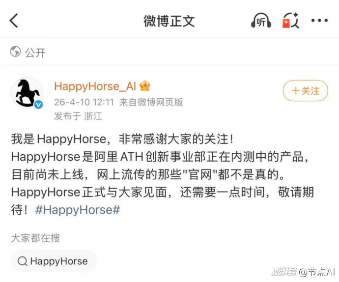 昨天,HappyHorse正式被阿里認(rèn)領(lǐng)了,來自不久前阿里剛成立的 AI 核心事業(yè)群Alibaba Token Hub,ATH。