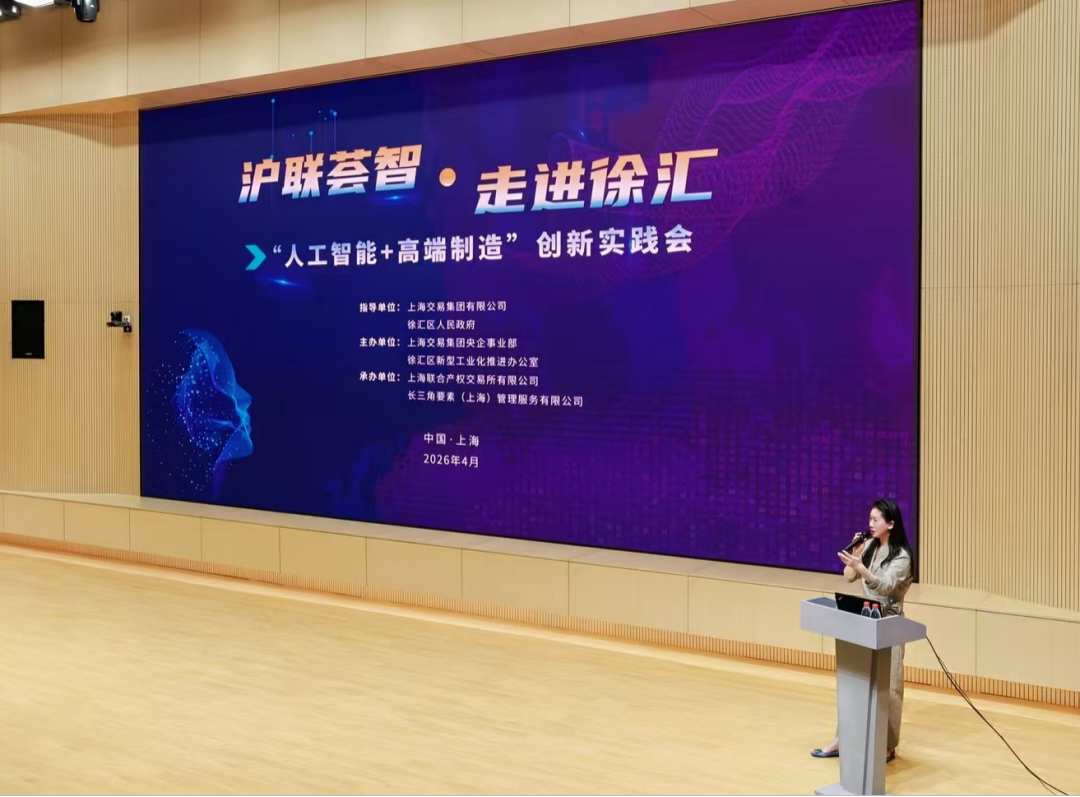 4月9日,“滬聯(lián)薈智 走進徐匯” ——“人工智能+高端制造”創(chuàng)新實踐活動在上海市徐匯區(qū)成功舉辦。本次活動由上海交易集團、徐匯區(qū)人民政府指導(dǎo),上海交易集團央企事業(yè)部、徐匯區(qū)新型工業(yè)化推進辦公室主辦,上海聯(lián)合產(chǎn)權(quán)交易所、長三角要素(上海)管理服務(wù)有限公司承辦,上海交易集團央企事業(yè)部總經(jīng)理,上海聯(lián)交所黨委副書記、總經(jīng)理徐艷出席活動并作活動總結(jié)發(fā)言。來自50余家中央企業(yè)、人工智能領(lǐng)軍企業(yè)及產(chǎn)業(yè)機構(gòu)的80余位代表參加活動。