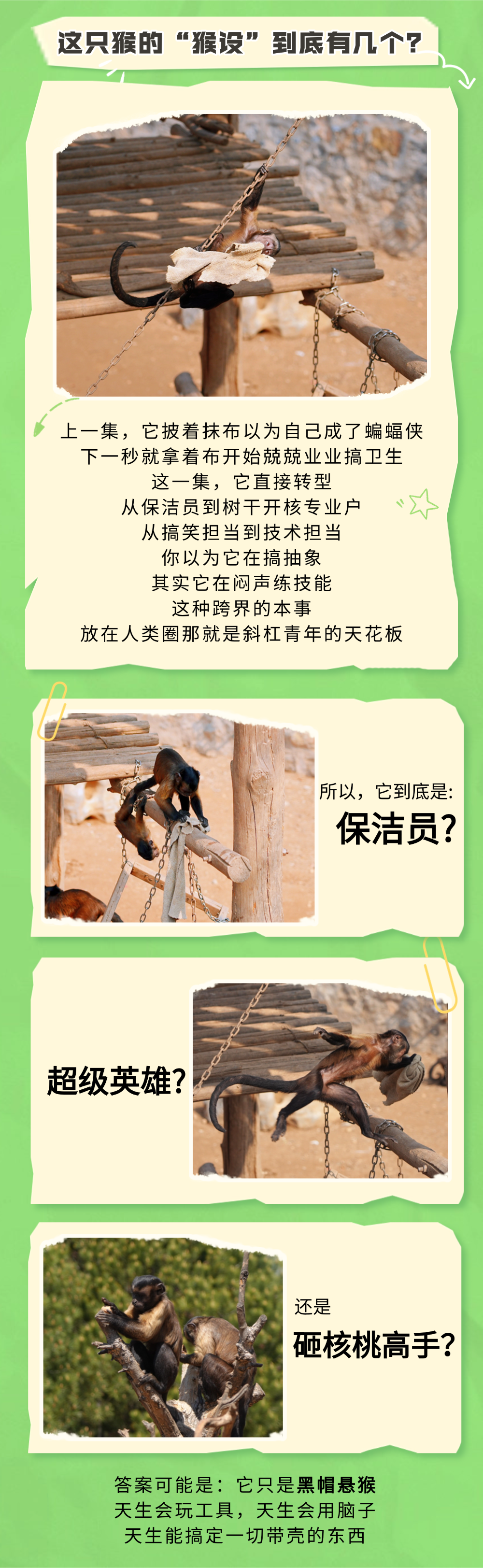 濟南野生動物世界的斜杠青年猴,上次當保潔,猜猜這次它是什么身份?