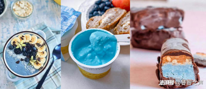 從中提取的“藻藍(lán)蛋白”,是一種蛋白質(zhì)本身攜帶的湛藍(lán)色。它安全、可溶,且?guī)е暮Q篚r味。當(dāng)pH值變化時,它還能從藍(lán)色變?yōu)樗{(lán)紫色,給了研發(fā)人員巨大的調(diào)色空間。