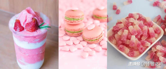 色彩是食物遞給大腦的第一張名片。研究早就證實(shí),顏色能直接影響我們對味道的預(yù)判——紅色暗示草莓或西瓜的甜,綠色勾起青檸或抹茶的清新,明黃色則承諾著檸檬的酸爽。在注意力經(jīng)濟(jì)的戰(zhàn)場上,顏色是第一枚視覺炸彈。