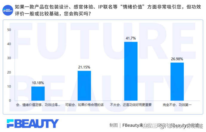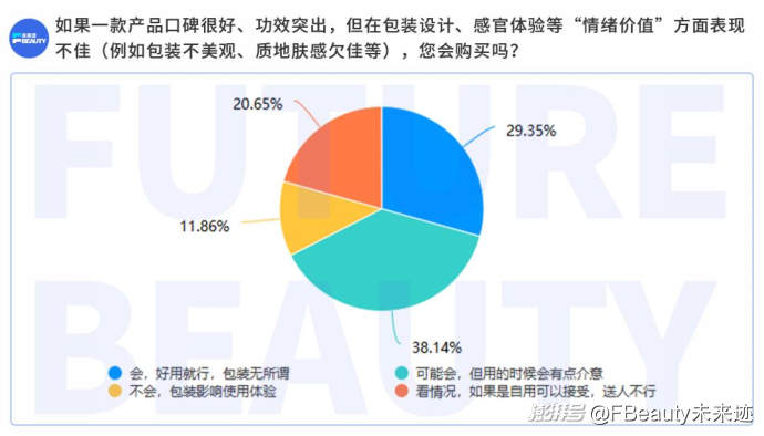 這種變化,在具體的消費(fèi)決策中被反復(fù)驗(yàn)證。當(dāng)一款產(chǎn)品功效足夠好,但包裝不吸引人、質(zhì)地膚感一般時,超過六成的人表示“會買”或“可能會買”。在他們看來,好用就是硬道理。
