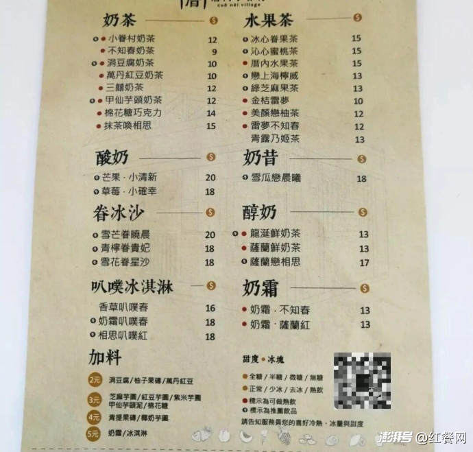 價(jià)格方面,小眷村的產(chǎn)品多位于15元以下,根據(jù)網(wǎng)友分享的2019年版菜單,涓豆腐奶茶售價(jià)10元、不知春奶茶為9元,冰沙、酸奶、冰淇淋等品類則在18-20元,對(duì)學(xué)生黨和年輕上班族來(lái)說(shuō)具有較高的吸引力。