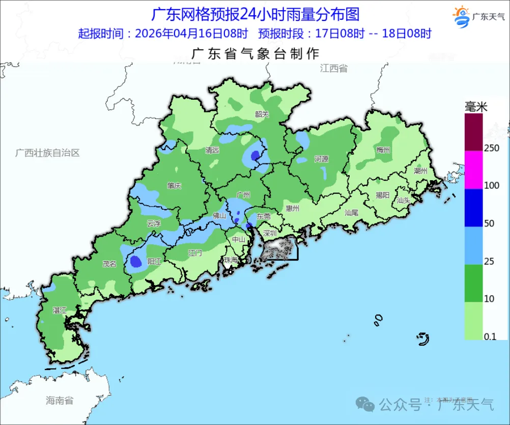17日,韶關(guān)南部、清遠(yuǎn)南部、河源北部、珠三角大部和粵西市縣陰天有中到大雨局部暴雨,其余市縣有雷陣雨局部大雨,上述地區(qū)雷雨時(shí)局地伴有8級(jí)左右的短時(shí)大風(fēng)。部分市縣早晚有(輕)霧。最高氣溫:韶關(guān)、清遠(yuǎn)、河源和珠三角北部市縣23~27℃,其余大部分市縣28~32℃。
