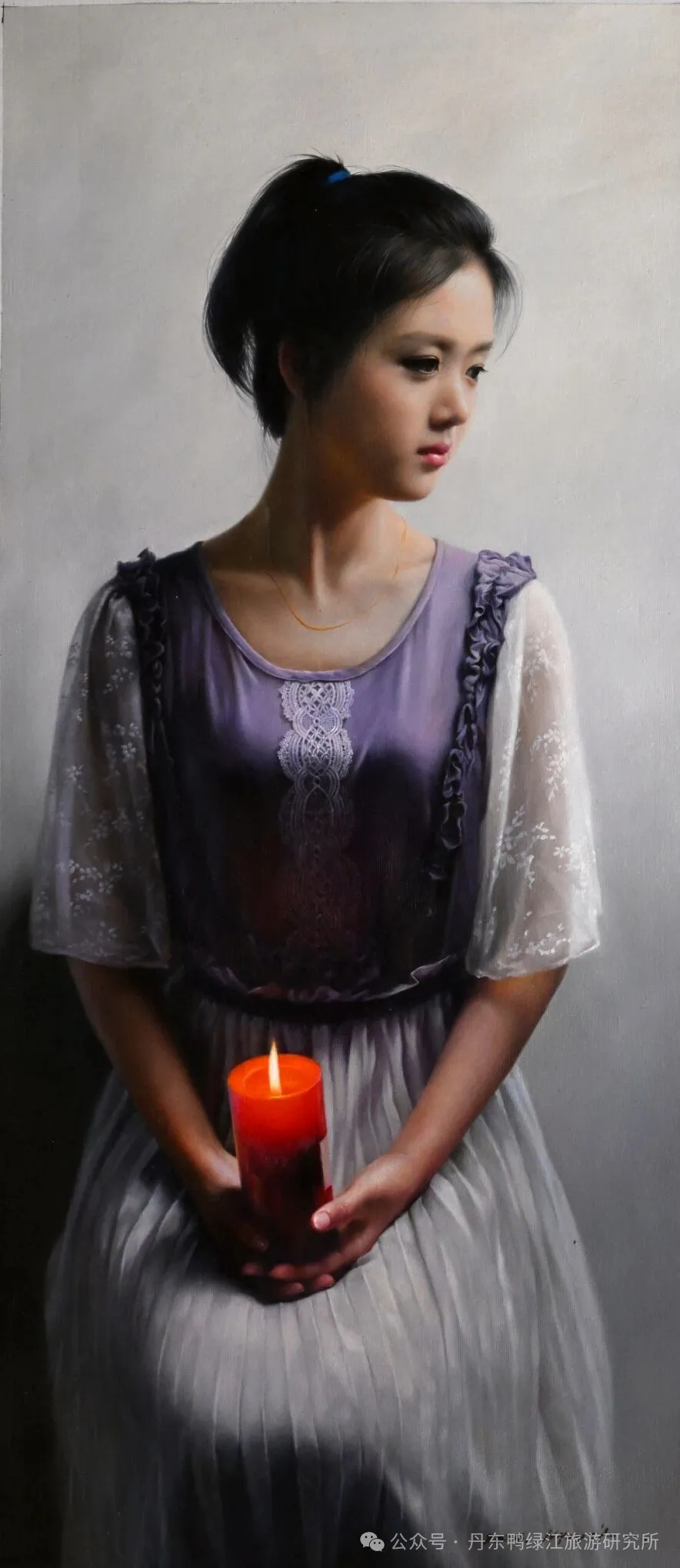白明學(xué)的超寫(xiě)實(shí)畫(huà)風(fēng)呈現(xiàn)出鮮明的日常轉(zhuǎn)向與人文聚焦,不去關(guān)切傳統(tǒng)主題性創(chuàng)作的范式束縛。他的作品以女性肖像為核心,不再刻意強(qiáng)化職業(yè)、身份與社會(huì)符號(hào),轉(zhuǎn)而描繪平凡個(gè)體的自然狀態(tài)與精神氣質(zhì)。少女的沉靜、青春的溫婉、日常的凝視、不經(jīng)意的回眸,這些微小而真實(shí)的生命瞬間,成為其超寫(xiě)實(shí)表達(dá)的母題。他剝離宏大敘事的外在包裹,深入人性?xún)?nèi)部,捕捉眼神中的純凈、神態(tài)中的平和與情緒中的含蓄,使人物形象脫離程式化塑造,擁有鮮活的生命質(zhì)感。這種對(duì)日常與個(gè)體的專(zhuān)注,讓超寫(xiě)實(shí)不再是單純的技藝展示,而成為對(duì)人性尊嚴(yán)、生命本真與生活之美的深度禮贊。