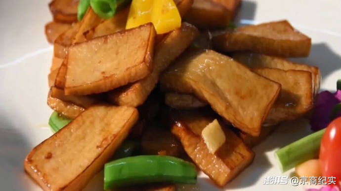 接著鏡頭切到黑龍江方正縣的得莫利村。這里有一道讓貨車司機(jī)寧可繞路也要吃的神菜——得莫利燉魚。整條活魚下鍋,配上豆腐、粉條、五花肉,柴火慢燉。節(jié)目拍得特別有煙火氣:大鐵鍋咕嘟冒泡,粉條吸飽了魚湯變得透亮,豆腐燉出了蜂窩眼。一口魚肉,一口蘸湯的粉條,再來二兩小燒……屏幕外的我仿佛聞到了香味。