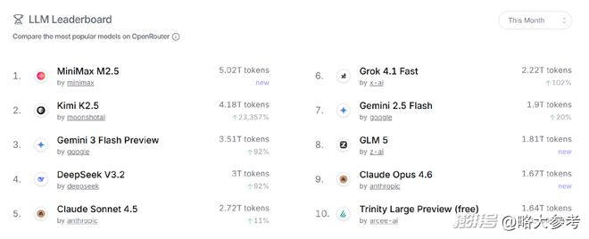 圖注:OpenRouter數(shù)據(jù)顯示,今年2月,Kimi K2.5模型成為海外市場