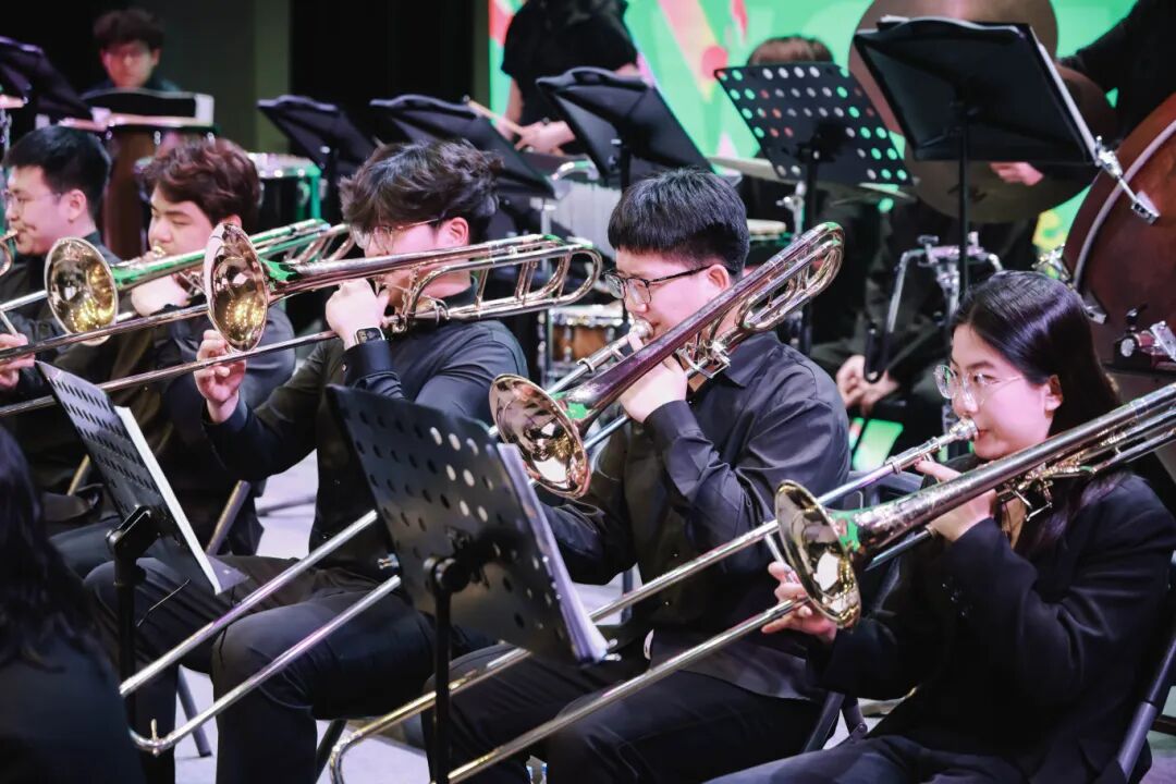 下半場,《歌劇魅影組曲》《加勒比海盜組曲》《邁克爾·杰克遜組曲》以管樂改編再現(xiàn)影視與流行經(jīng)典,而《廣寒宮破陣曲》《鋼鐵洪流進行曲》《唱支山歌給黨聽》《扎西與卓瑪》《如愿》《我的祖國》等中國作品更將現(xiàn)場氣氛推向高潮。整場曲目橫跨古典、民族、影視與流行,展現(xiàn)了管樂藝術(shù)的豐富表現(xiàn)力。