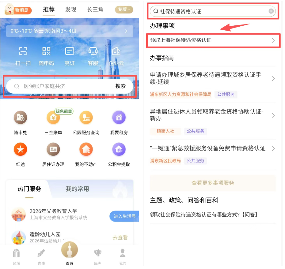 打開“隨申辦市民云”APP,首頁搜索“社保待遇資格認(rèn)證”,找到“領(lǐng)取上海社保待遇資格認(rèn)證”服務(wù)。