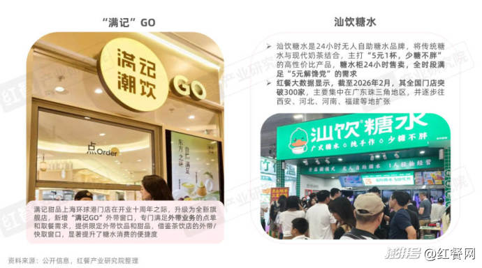 比如在消費場景上,糖水打破傳統(tǒng)堂食的局限,推出了外帶模式。以滿記甜品為例,據了解,其上海環(huán)球港門店在開業(yè)十周年之際就新增“滿記GO”外帶窗口,專門服務外帶點單取餐,讓不少消費者直呼:“沒時間堂食可以帶走,取餐也很快”。