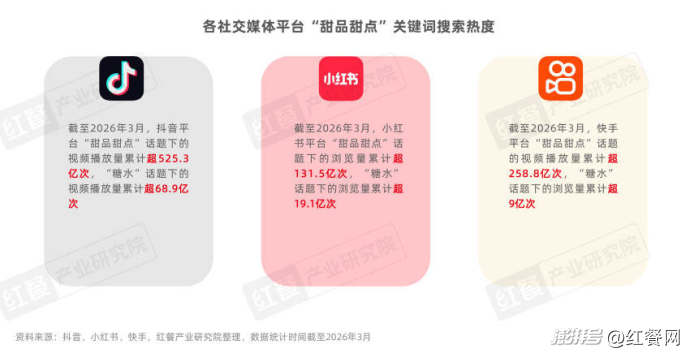 數據顯示,截至2026年3月,“糖水”相關話題視頻在抖音、快手平臺的播放量分別超68.9億次和超9億次,另外在小紅書“糖水”的話題瀏覽量也累計超19.1億次。熱度之下,一批糖水品牌迎來發(fā)展機會,近年來門店數量得到快速增長。