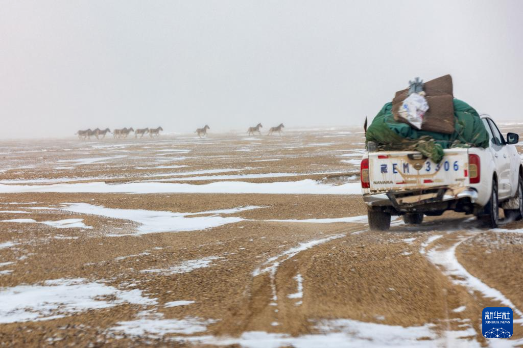 這是4月11日在巡護(hù)路上遇到的藏野驢群。新華社記者 姜帆 攝