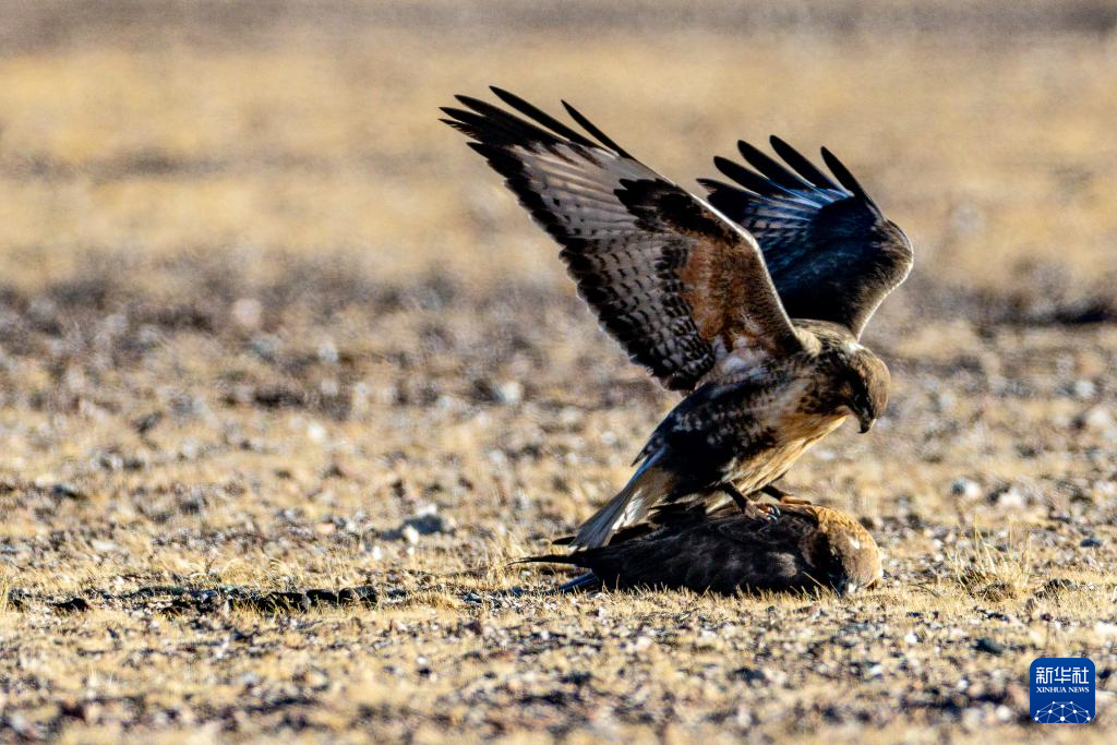 這是4月11日在巡護(hù)途中拍到的大鵟交尾畫面。新華社記者 姜帆 攝
