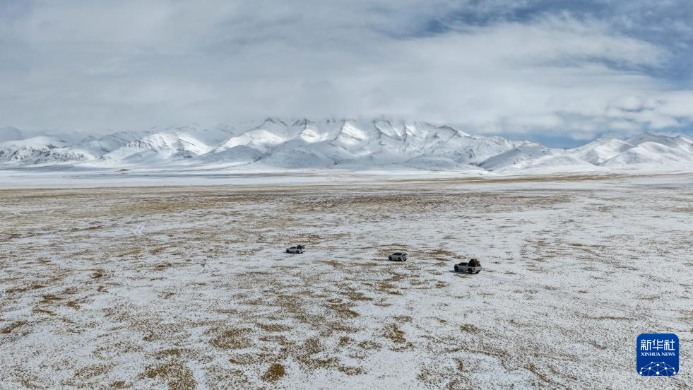 4月9日,羌塘國家級(jí)自然保護(hù)區(qū)那曲地區(qū)管理局的巡護(hù)隊(duì)伍在雪中穿越崎嶇地貌(無人機(jī)照片)。新華社發(fā)(梁春寧 攝)