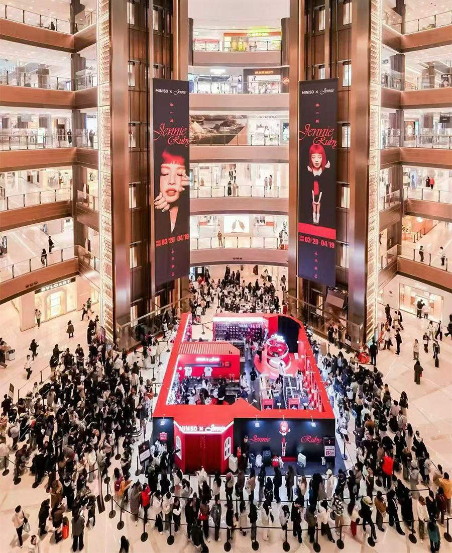 除聯(lián)名產(chǎn)品外,此次合作還同步落地了線下快閃活動。3月20日,MINISOxJennie聯(lián)名快閃活動率先登陸上海港匯恒隆廣場。除常規(guī)聯(lián)名產(chǎn)品外,Jennie快閃限定聯(lián)名家居服也同步上架,引發(fā)廣泛關(guān)注。公開數(shù)據(jù)顯示,此次快閃創(chuàng)下了名創(chuàng)優(yōu)品自2025年以來快閃單店單日業(yè)績流水新高。
