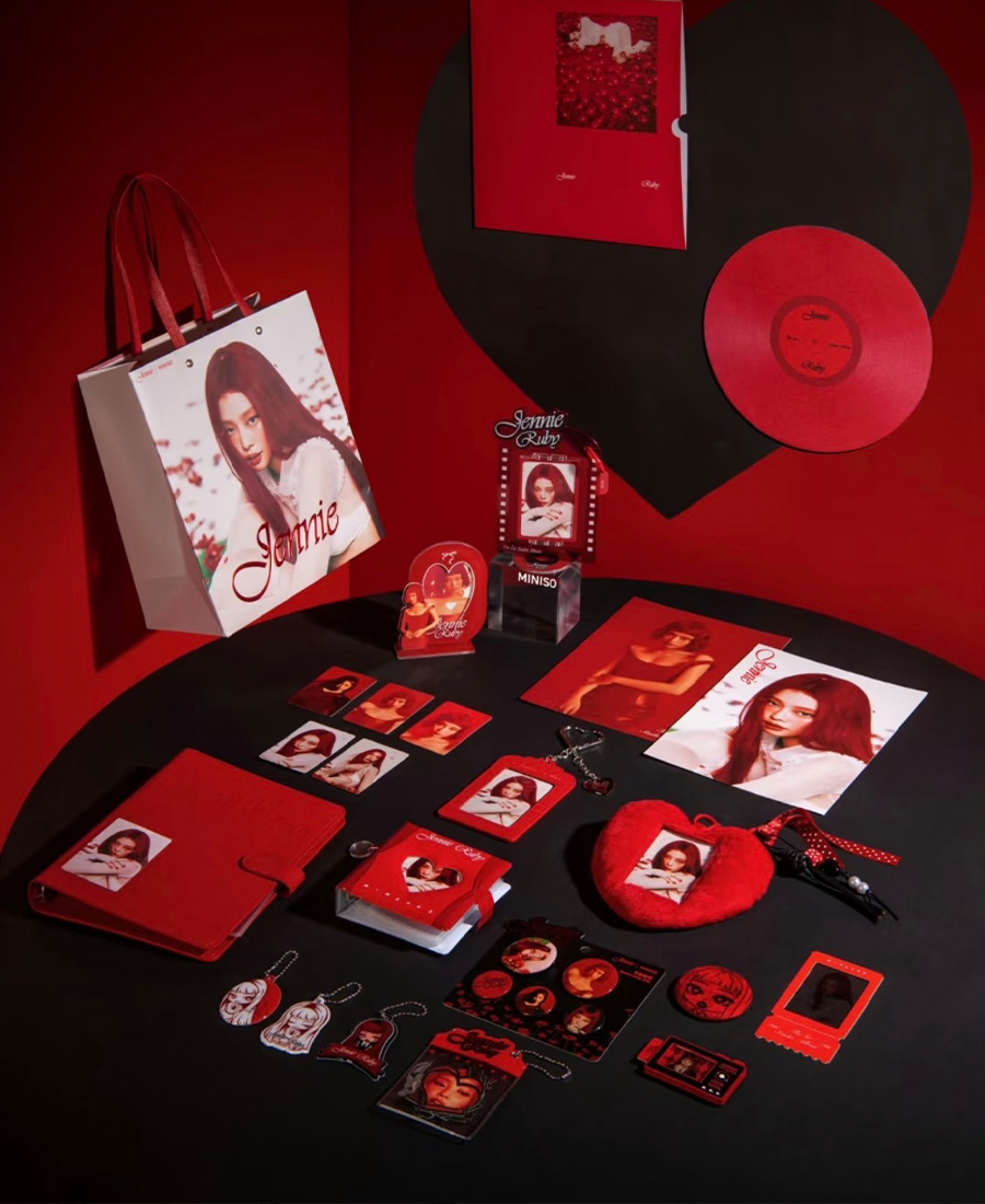 名創(chuàng)優(yōu)品與韓國女團BLACKPINK成員Jennie的首張個人專輯《Ruby》展開聯(lián)名合作。《Ruby》的專輯概念源自劇院經(jīng)典的深紅色幕布,聯(lián)名產(chǎn)品的主色調(diào)也完全貼合這一視覺語言,以紅黑為主。
