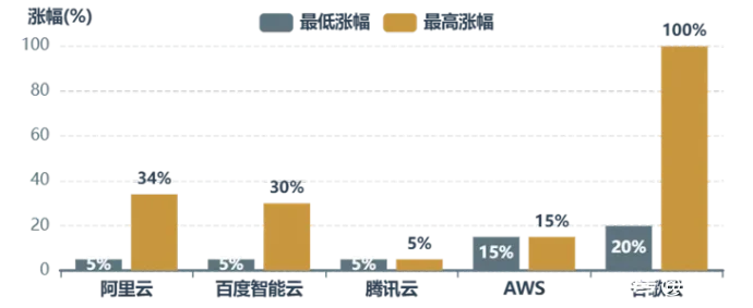 在云端,3月到4月間,國內(nèi)頭部云廠商接連調(diào)價,打破了行業(yè)長期低價競爭慣性。阿里云4月18日起AI算力產(chǎn)品最高漲幅34%,高性能存儲漲幅30%;百度智能云AI算力產(chǎn)品上調(diào)5%-30%;騰訊云5月9日起AI算力等產(chǎn)品上調(diào)5%。全球范圍內(nèi),亞馬遜AWS已于1月對機(jī)器學(xué)習(xí)實例上調(diào)價格約15%,谷歌云也進(jìn)行小幅調(diào)整。