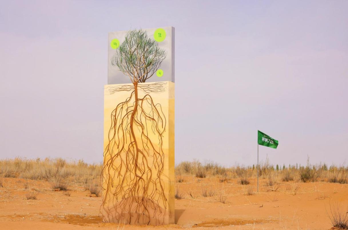 一座高6.5米以“梭梭”為主題的自然科普地標(biāo),在“春種”現(xiàn)場正式啟幕。梭梭樹是螞蟻森林10年前種下的第一個樹種,也是目前種下數(shù)量最多的樹種。一棵梭梭看似普通,卻能不停向下扎根,固定約10平米的沙土,被譽為“固沙先鋒”。這種“向下扎根,向上生長”的精神,正是螞蟻森林10年來希望向社會公眾傳遞的。