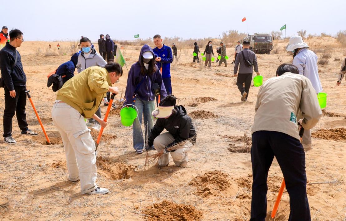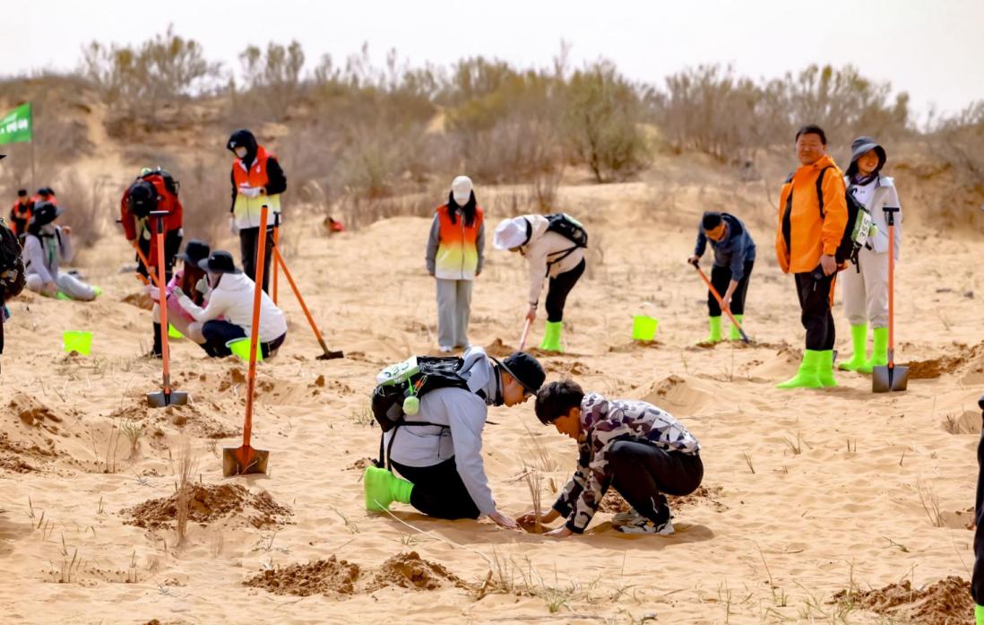 一棵棵將在沙海中迸發(fā)頑強生命的樹苗,由300多位來自全國各地的“螞蟻森林的朋友們”親手種下。