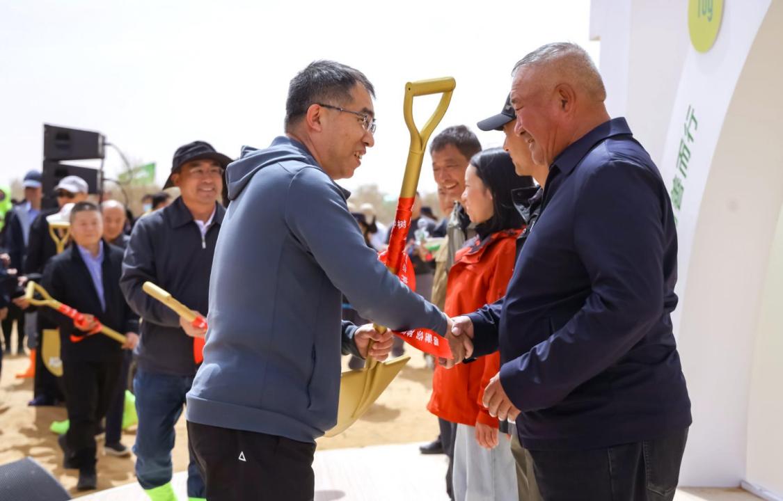 來自內(nèi)蒙古烏梁素海山水工程、新疆阿克蘇河流域山水工程、寧夏中衛(wèi)“三北”工程等國家生態(tài)修復(fù)工程的負(fù)責(zé)人,不僅在現(xiàn)場與樹友們分享了不同地區(qū)生態(tài)治理的挑戰(zhàn)和心得,還將象征種樹治沙精神的“金鏟子”頒發(fā)給了葉惠平等在阿拉善為全國樹友們種下小樹的種樹人。