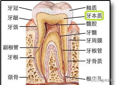 要理解這場跨越4.65億年的進(jìn)化奇跡,我們先得拆解牙齒的構(gòu)造。想象你的牙齒是一座微型堡壘,由四部分組成,其中最外層的牙釉質(zhì)是人體最堅硬的物質(zhì),而內(nèi)層的牙本質(zhì)才是真正的“核心”。