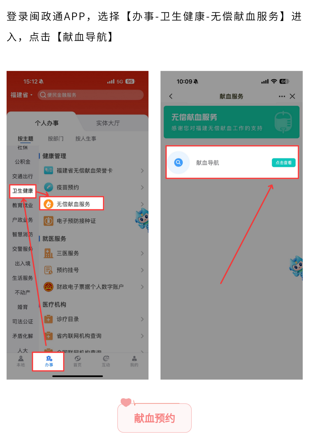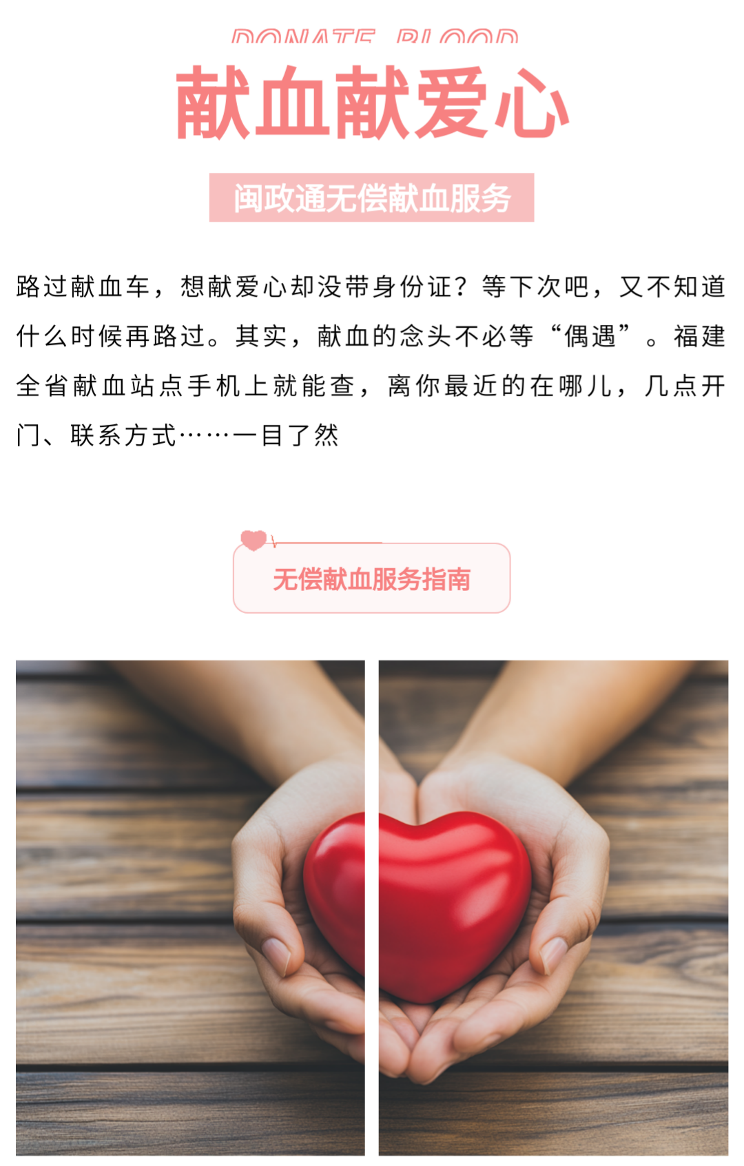 在福建想獻血不知道去哪兒?用閩政通!附近站點一秒查,線上預約一鍵達!