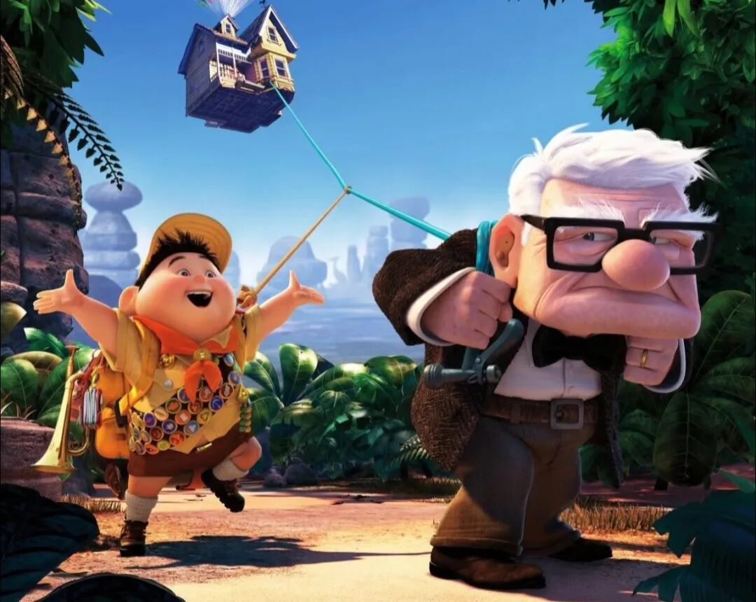 《飛屋環(huán)游記》里的倔老頭卡爾爺爺,為了年輕時和妻子的約定,用氣球拖著房子飛。
